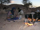 Prise d'eau en creusant dans le oued et départ pour une courte étape jusqu'au bivouac bien à l'écart du village.